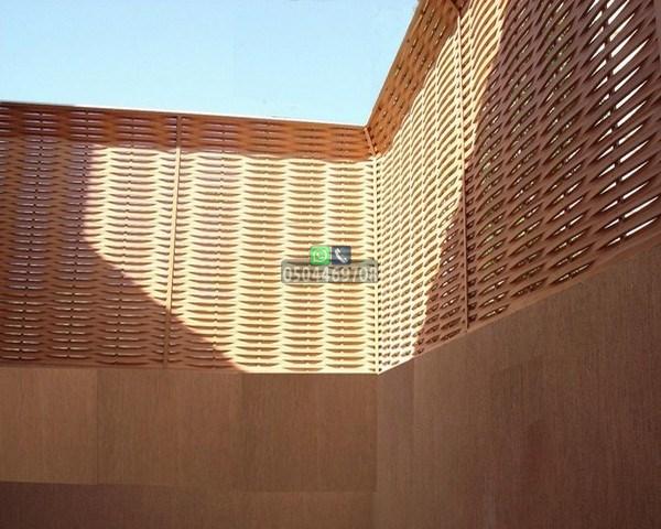 يمكن تصميم الساتر الخشبي بأشكال عصرية أو كلاسيكية، سواء بشكل شرائح أفقية، متداخلة، أو ذات زخارف هندسية، مما يتيح تناغمًا مع طراز المنزل أو الفناء الخارجي.